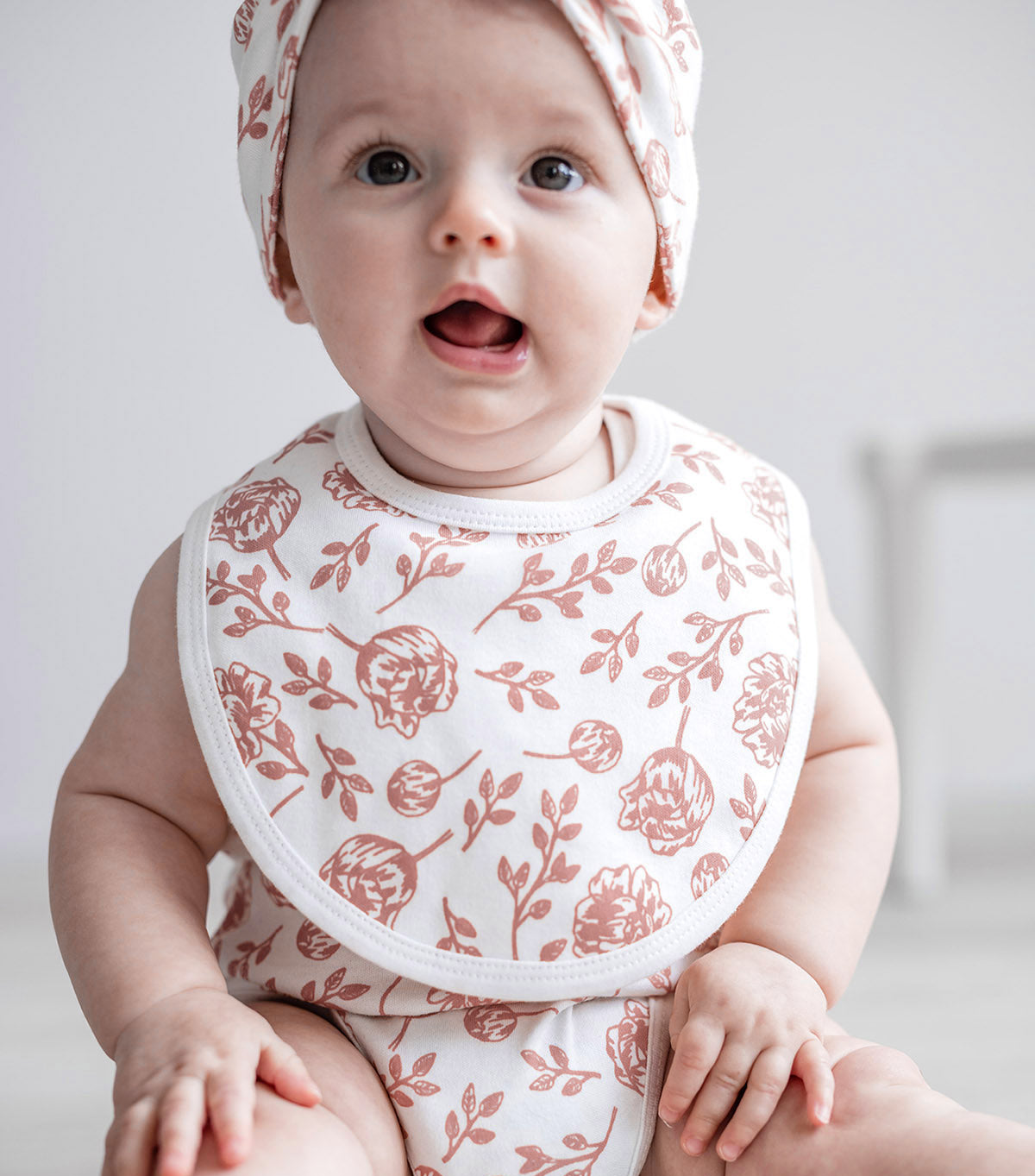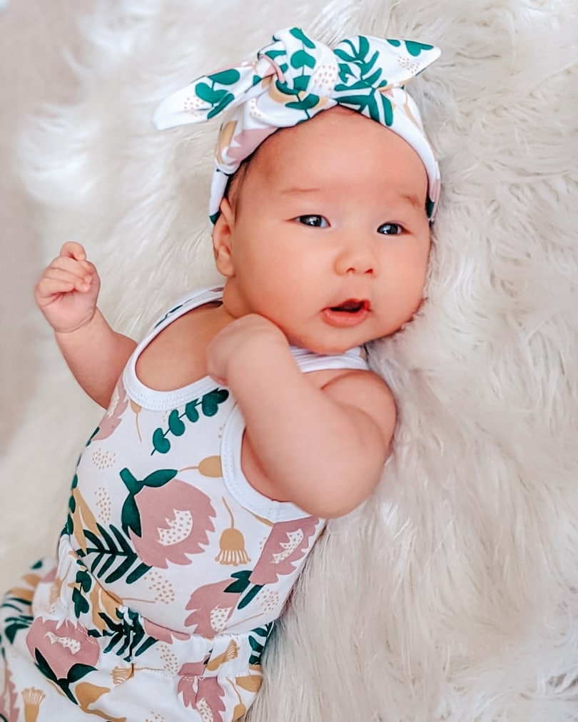 Blush Peony Baby Clothes in 100% Organic Cotton. Our peony print is...