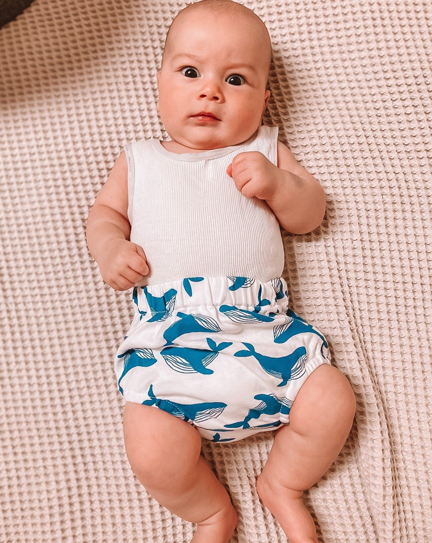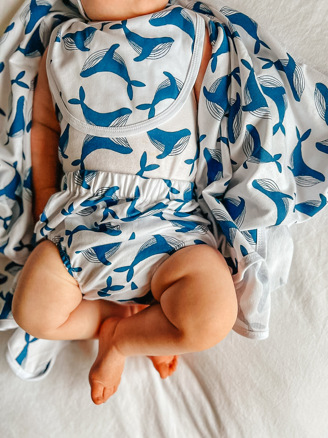 Our Whale print is super fun and comes in a stunning blue hue as deep as the ocean!
