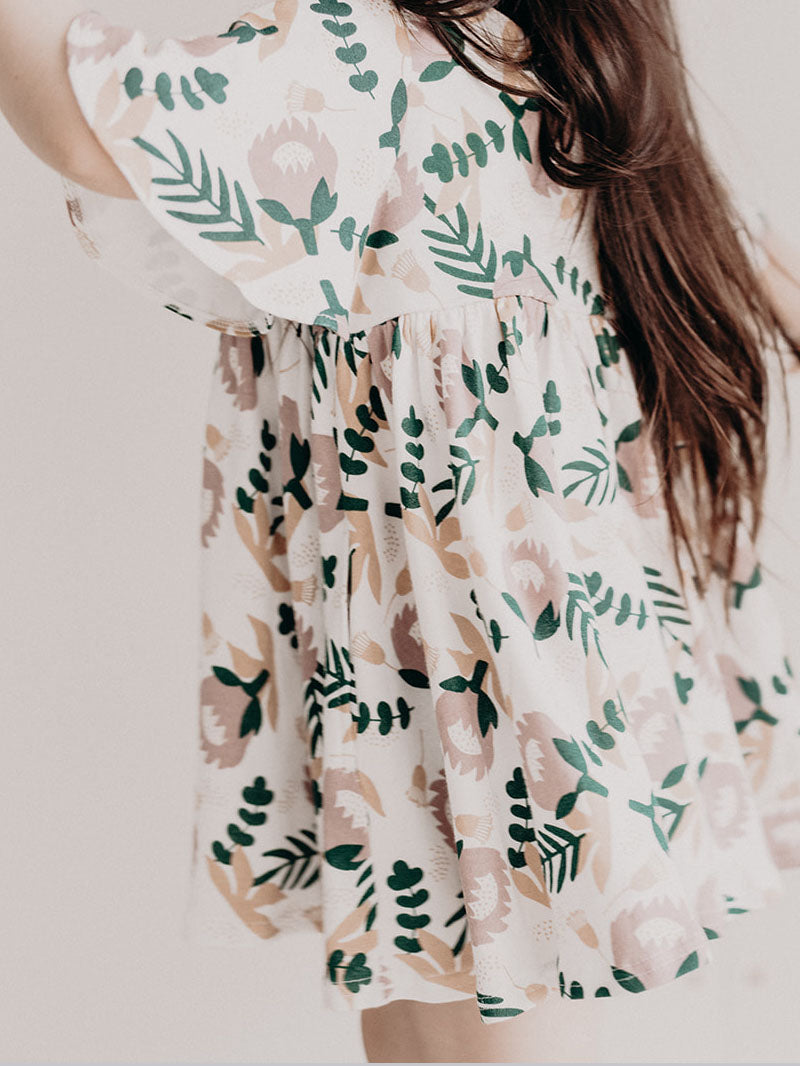 Hello Protea! A design featuring golden flowering gums, forest green foliage and striking dusty pink proteas!