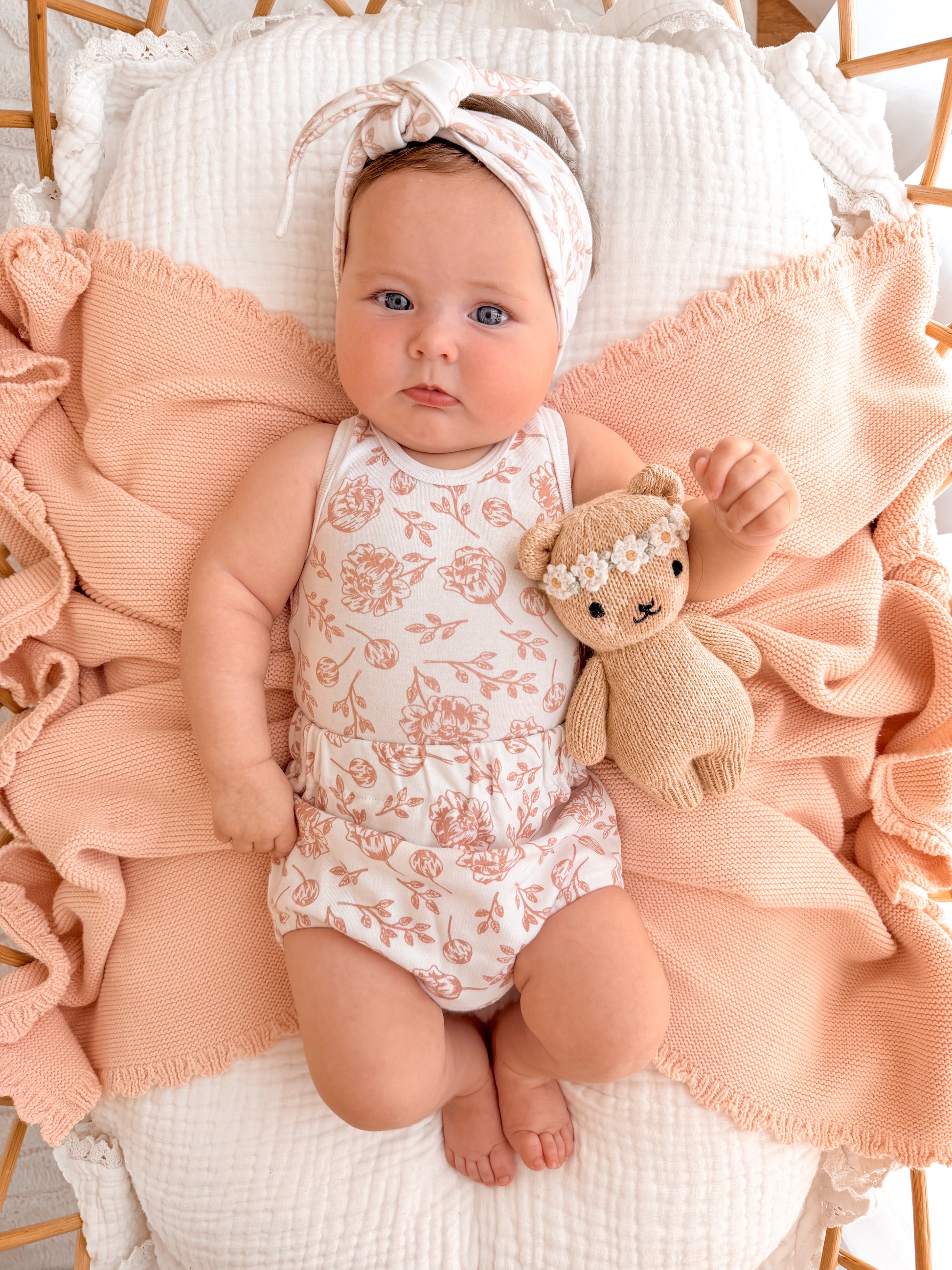 Blush Peony Baby Clothes in 100% Organic Cotton. Our peony print is...