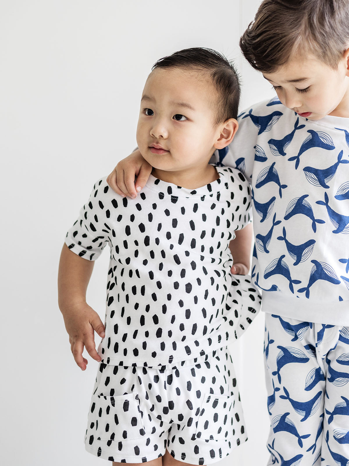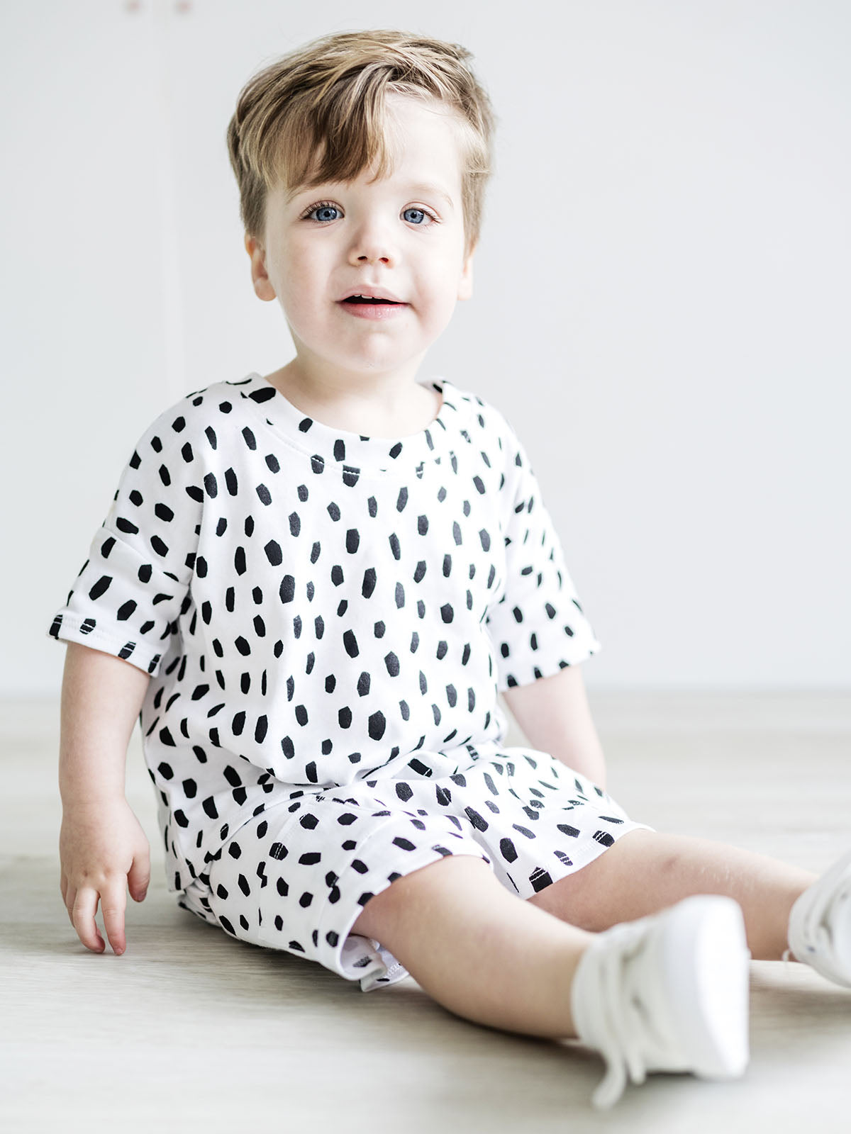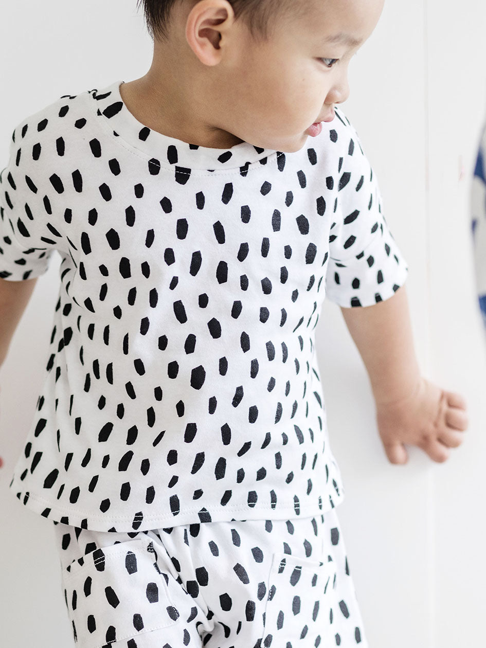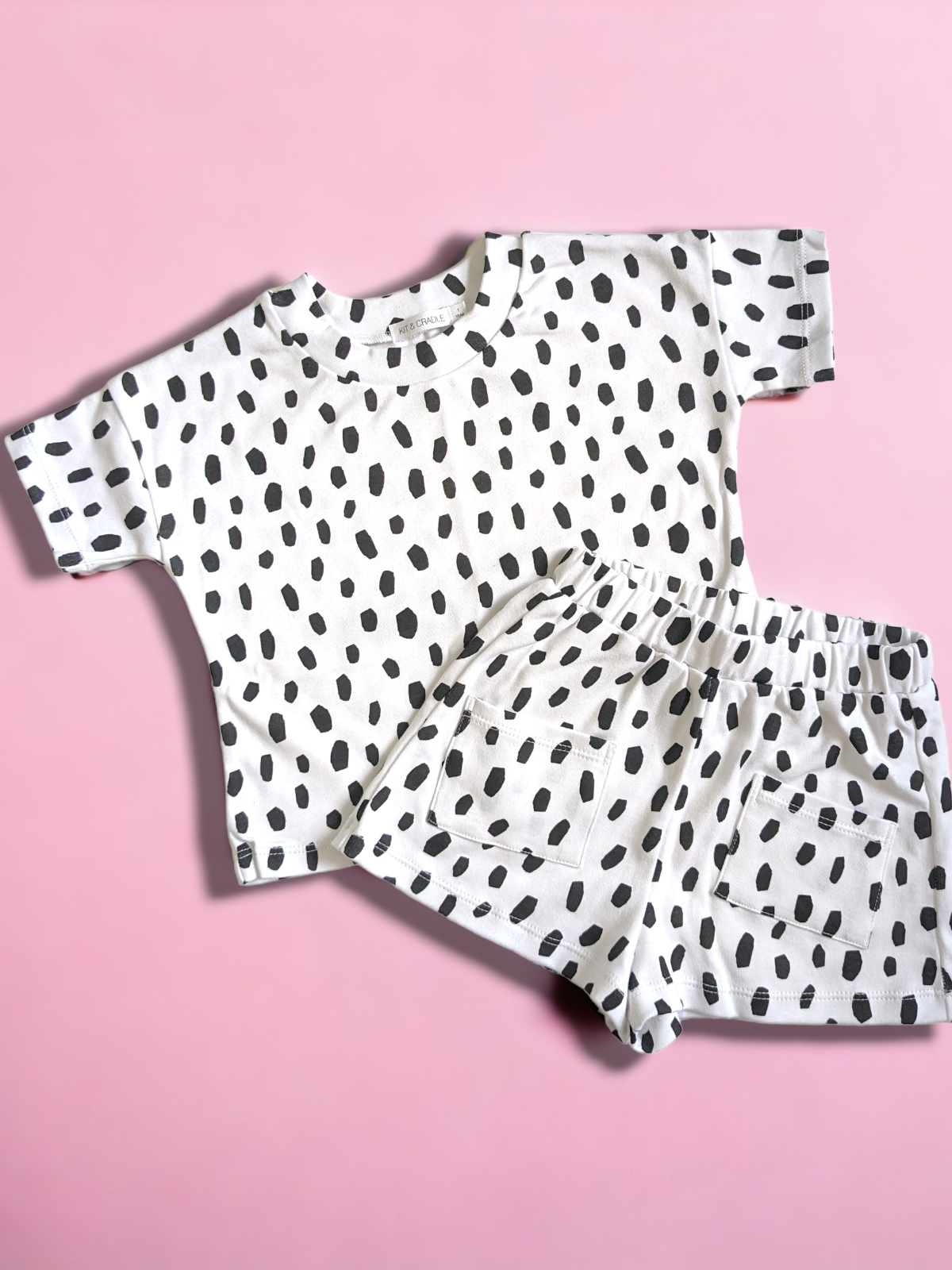 This t-shirt and shorts set is the perfect wardrobe staple for young boys and girls. Soft and comfortable, made from organic cotton, this set features a drop shoulder t-shirt and wide-legged, shorts with an elastic waistband and cut patch pockets.